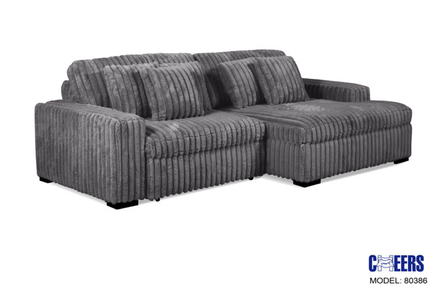 This is a power slide sofa which means the two seats both slide out to make individual chaise loungers or together to make a bed. Super soft minky fabric.